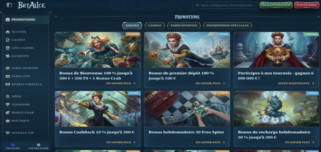 BetAlice casino FR s’impose aujourd'hui comme l’un des meilleurs puisqu’il a su allier modernité, sécurité et innovation. Le fait qu’il propose un bonus de bienvenue attractif, des dépôts rapides et un catalogue riche séduit de nombreux joueurs français.
