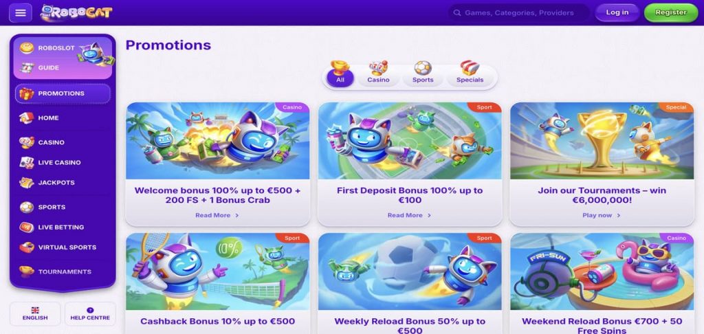 Toutes ces promotions améliorent votre expérience au casino. Toutefois, les joueurs ne pourront pas profiter gratuitement de RoboCat bonus sans dépôt. Veuillez consulter les promotions sur la page pour voir les offres actuelles et les termes généraux.