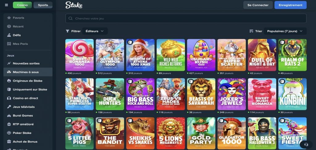 Cette organisation rend la navigation fluide et intuitive pour les joueurs. Les nombreux titres de Stake Casino sont fournis par des éditeurs de renom tels que Pragmatic Play, Evolution, Nolimit City, Hacksaw, Play’n Go, Print Studio, NetEnt, Better Gaming, VoltEnt, etc.